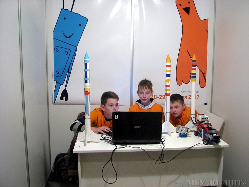 В 2017 году Фестиваль проводился уже в четвертый раз. Всего в нем приняло участие более 1200 детей из разных стран. На Фестивале было представлено более 30 категорий соревнований, мастер-классы и выставки. Наши ребята принимали участие в двух категориях: «Свободная творческая» и «Кубок РТК». Пройти отбор на соревнования было достаточно сложно. В «Свободной творческой» категории ребятам предстояло не только сделать свой проект, но и подготовить презентацию, видеоролик, плакат. Всего в категории было заявлено более 40 проектов, но до финала были допущены только 26. Наши оба проекта «Умный автобус» (Журавлев Афанасий, Лисин Вадим, Федосеев Тимофей) и «Автоматическая кормушка» (Дементьев Захар) приняли участие в финальной части Робофиниста. В течении двух дней ребята отвечали на вопросы членов жюри, готовили рекламу на проект оппонента, работали в качестве жюри для младшей категории.